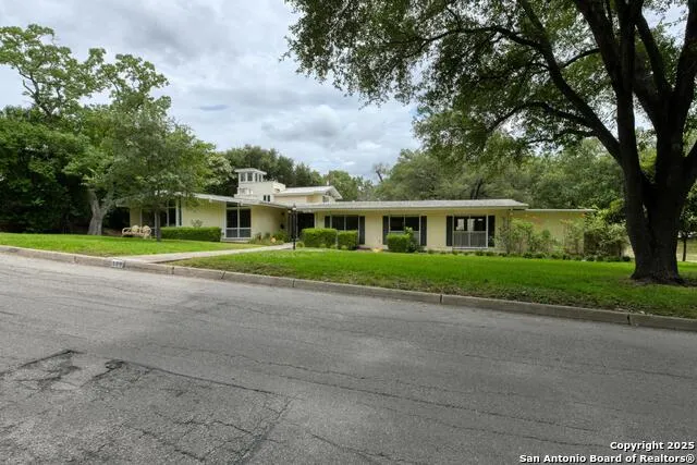 This stunning corner lot in Terrell Hills host a house with unique curb appeal and so many possiblities... "Lean into" the Mid Centurty Modern vibe, or consider it a "Rambling Ranch", This one is waiting for your new direction. This property has 2 living areas, 2 dining areas, 5 full Bedrooms, + office, and 4 full bathrooms. Don't miss the 3rd Story Widows Walk, it is such a nice surprise! The house also has an oversized 2 car garage, with extensive storage, as well as a 2 car carport. The beautiful windows and "U" Shape Floorplan hug the pool and provide tons of outdoor living space. Great Bang for your Buck in this one!