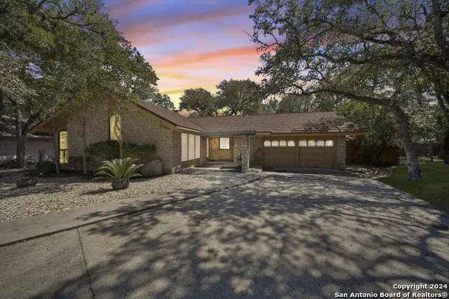 Discover this hidden treasure, a one-of-a-kind home that seamlessly blends curb appeal with modern luxury. As you enter, you're greeted by high ceilings and an open floor plan that creates an inviting atmosphere. The stunning vaulted stone fireplace, flanked by large picture windows, serves as a centerpiece for the living area. The spacious kitchen is a chef's dream, featuring exotic granite countertops, a professional gas stove, and custom cabinetry. Tongue and groove cedar ceilings add a touch of warmth, with hardwood floors in the bedrooms and elegant French quarter tile throughout the main living areas. Step outside to your private backyard oasis, perfect for entertaining. Enjoy the in-ground pool, or relax under the covered patio adorned with cedar posts and ceilings. With skylights that illuminate the home, a cozy hot tub room/den, and a luxurious master suite with direct outdoor access, this property offers unparalleled comfort. Backing up to a serene greenbelt, this home provides a peaceful country feel while being conveniently located near 410 and IH10. Don't miss this unique opportunity to own a slice of Texas Hill Country charm right in the city!